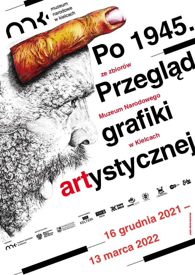 Plakat do wystawy „Po 1945. Przegląd grafiki artystycznej” w MNKi zaprojektowałem jako syntetyczny komentarz do powojennej wrażliwości graficznej: dyscypliny, redukcji i pracy na kontraście. Kompozycja opiera się na klarownej hierarchii typograficznej i oszczędnym znaku/układzie, który przywołuje język pracowni graficznej (matryca–odbicie, rytm, modulacja, „ślad” narzędzia). Całość buduje napięcie między porządkiem a ekspresją – tak, by plakat był jednocześnie informacyjny i „zrobiony z grafiki”: prosty w odbiorze, a jednak pozostawiający przestrzeń na interpretację.